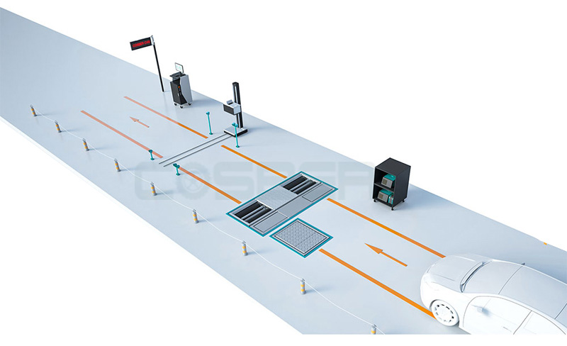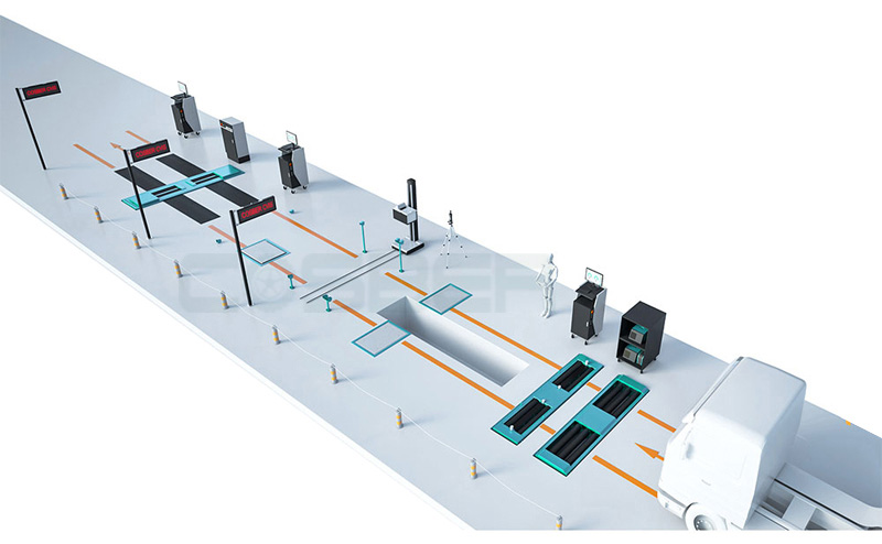 Alat Ukur Dimensi Kendaraan secara otomatis dengan kemampuan ukur: PANJANG, TINGGI, LEBAR, FOH, ROH, WHEELBASE, PHOTO 4 SISI